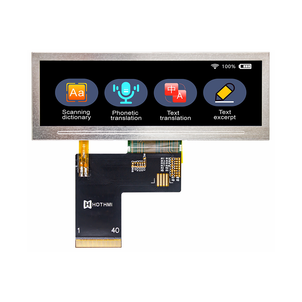 在充斥着传统方形屏幕的市场中,这款4.0英寸TFT显示屏凭借其独特性脱颖而出。其独特的480x128像素分辨率打造出宽屏条形格式,非常适合在紧凑、节省空间的设计中显示关键信息条、状态栏和诊断数据。这种独特的宽高比使其成为需要水平信息布局的应用场景的理想之选,使其区别于市面上任何其他标准4英寸显示屏。