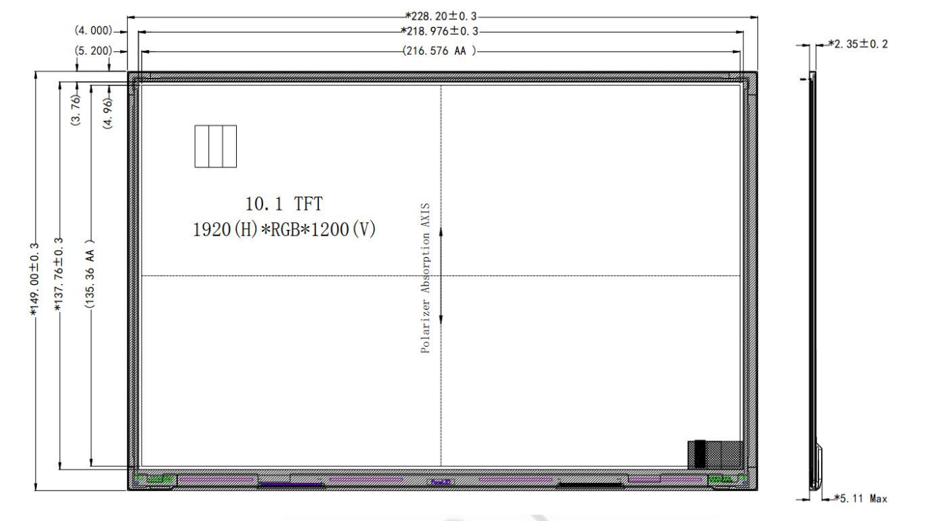 228.2x149x2.35 | 10.1 | 10.1 | 216.576x135.36 | IPS全视角 | 1000cd/m2 | FFC-30 pin | eDP | 防静电ESD 8KV | -20~70℃ | +3.3 V | ||